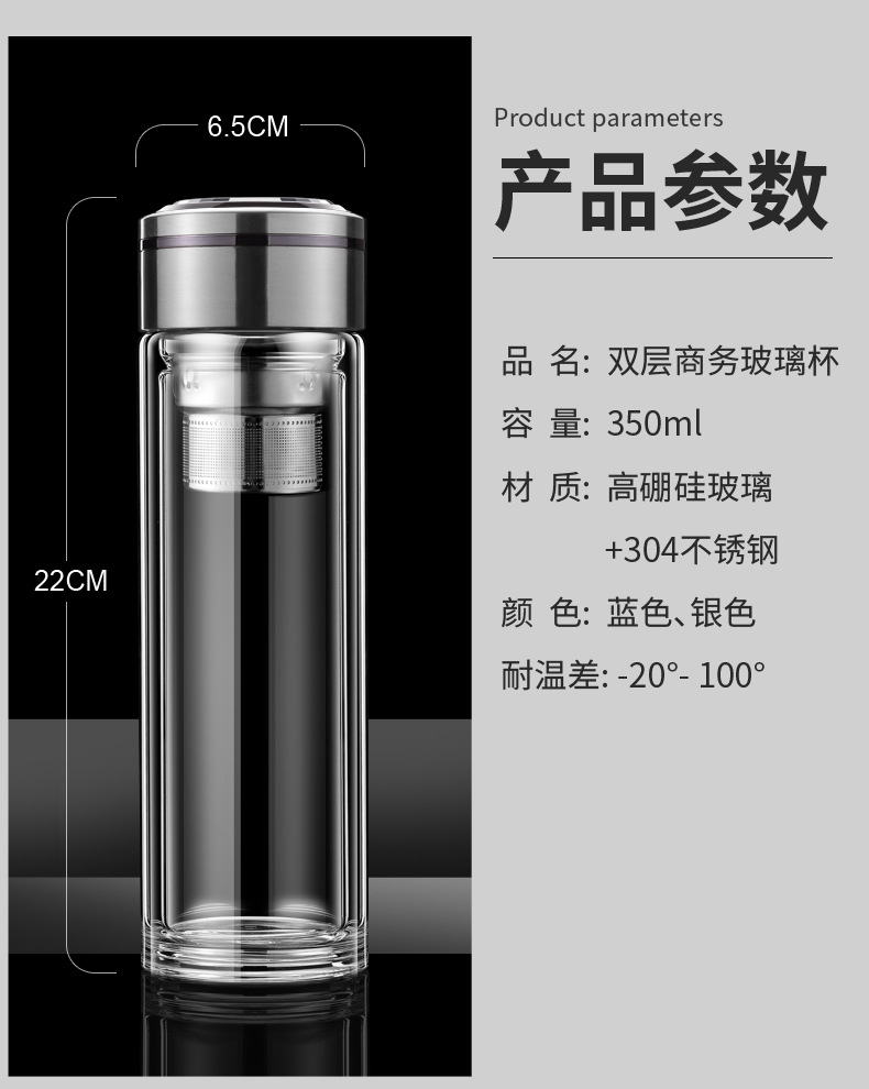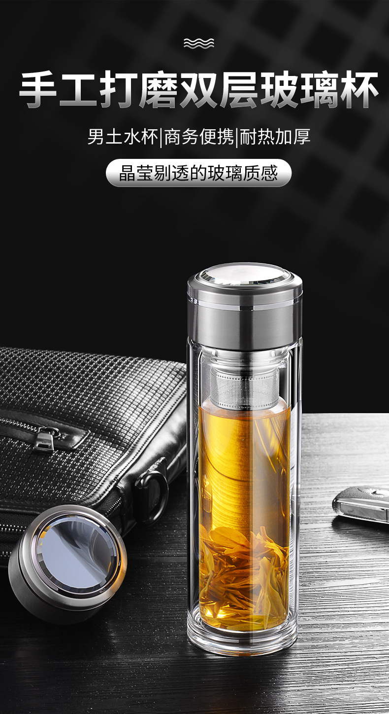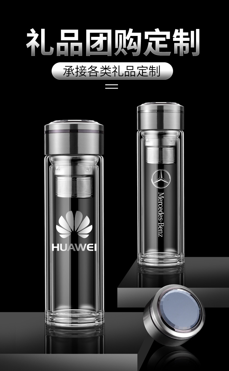新款高品質(zhì)雙層玻璃杯高硼硅水杯車載禮品杯定制
