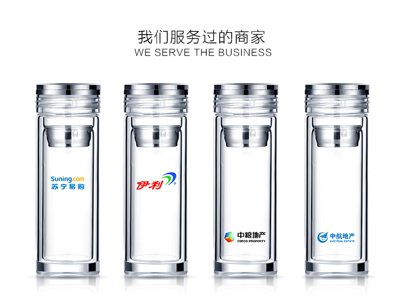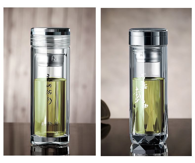 創意雙層水晶高山流水玻璃杯帶蓋茶杯批量訂定制印LOGO
