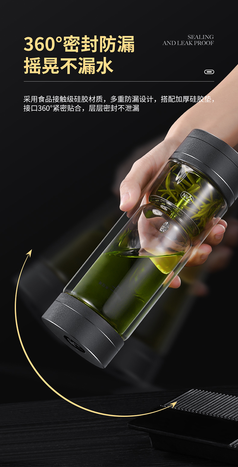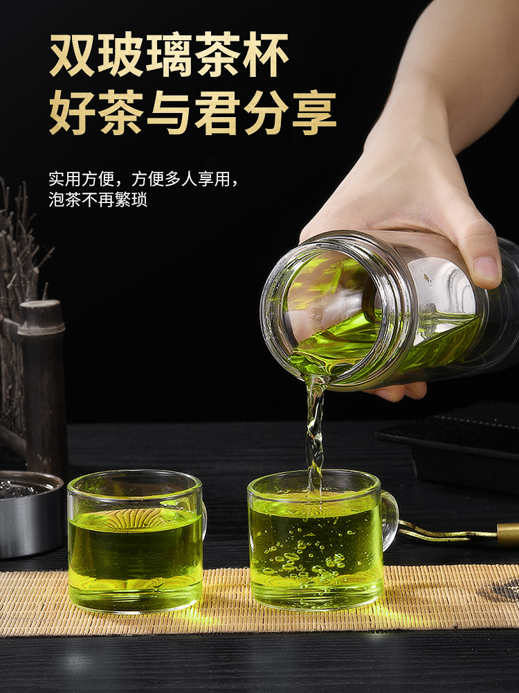 茶水分離杯雙層玻璃杯男女士高檔大容量便攜隔熱透明辦公泡茶水杯