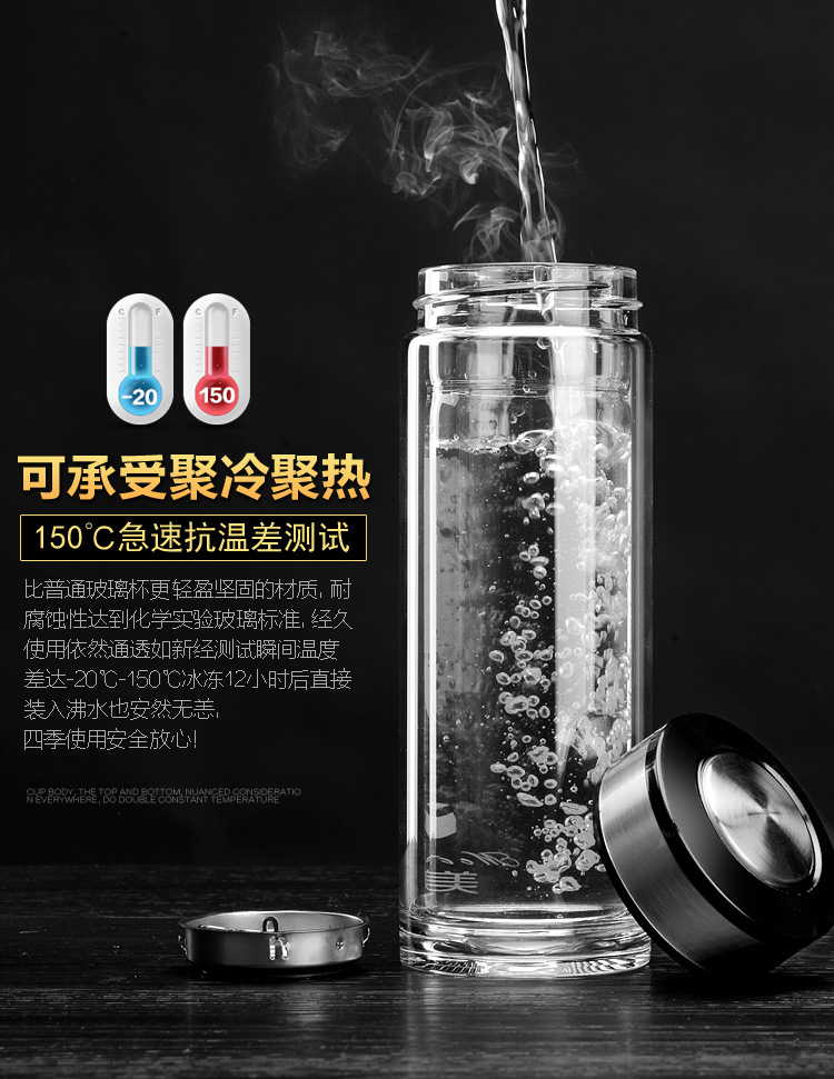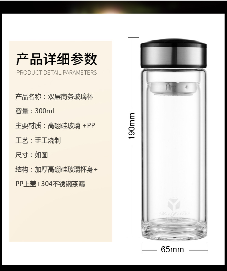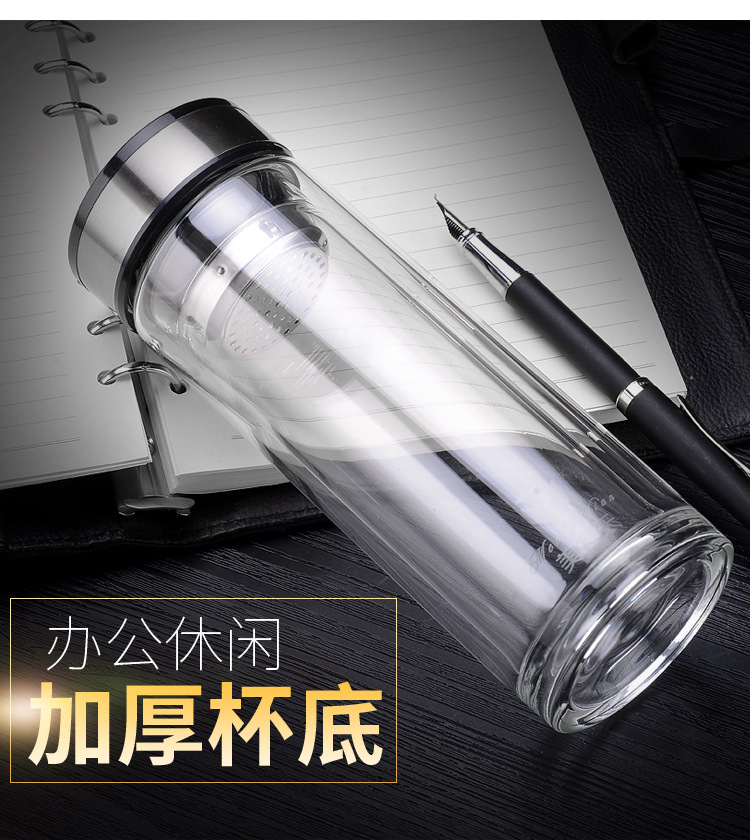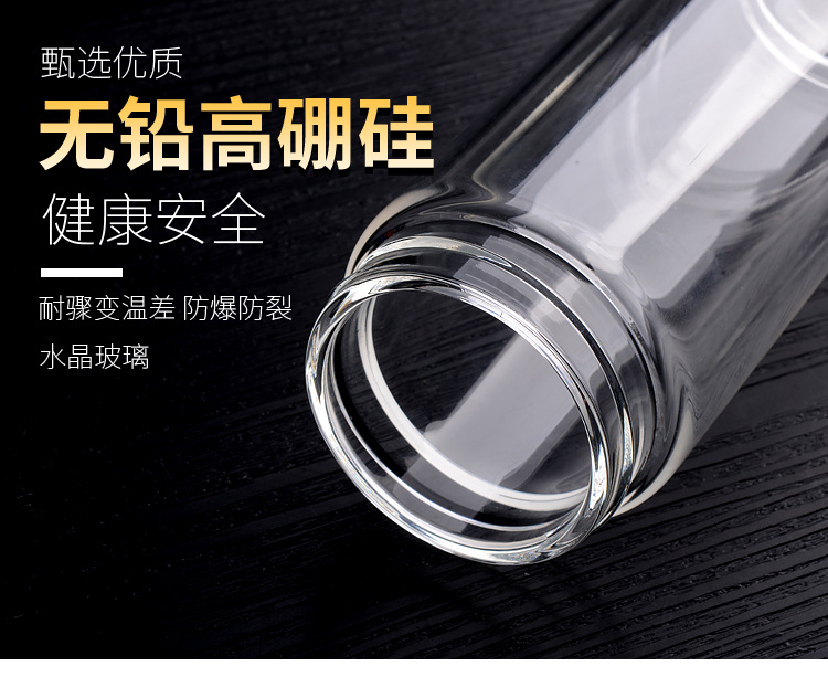 雙層厚底透明玻璃杯商務禮品高硼硅水杯廣告杯批發(fā)定制logo