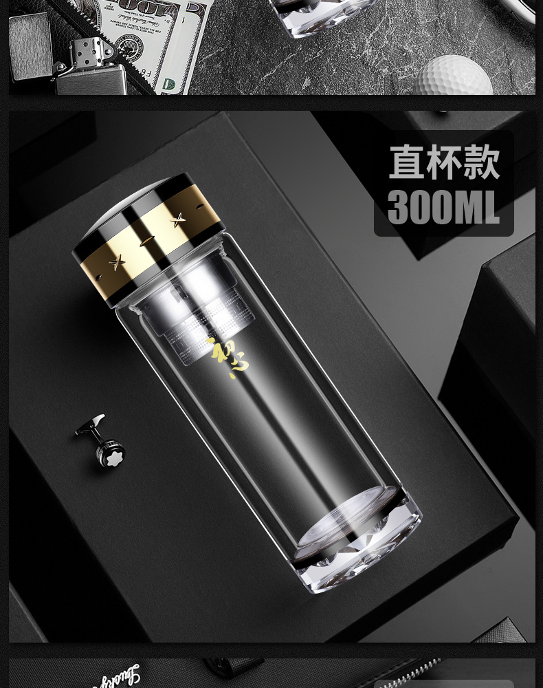 雙層水晶玻璃杯商務(wù)禮品水杯子廠家直銷定制logo茶杯