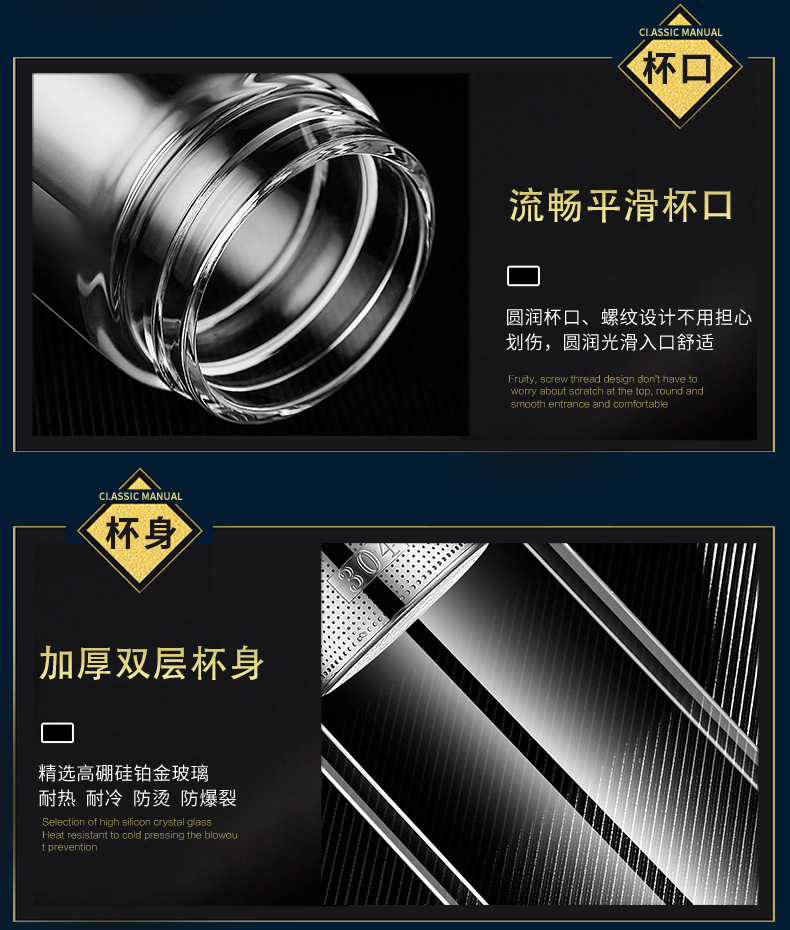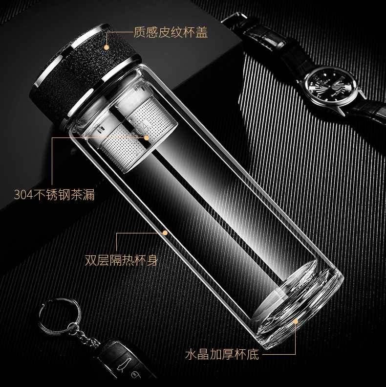 廠家直銷新款創(chuàng)意高端商務(wù)雙層玻璃杯帶濾網(wǎng)辦公水杯定制