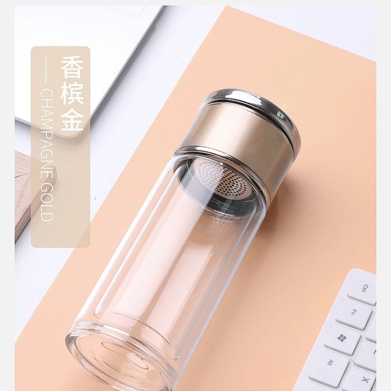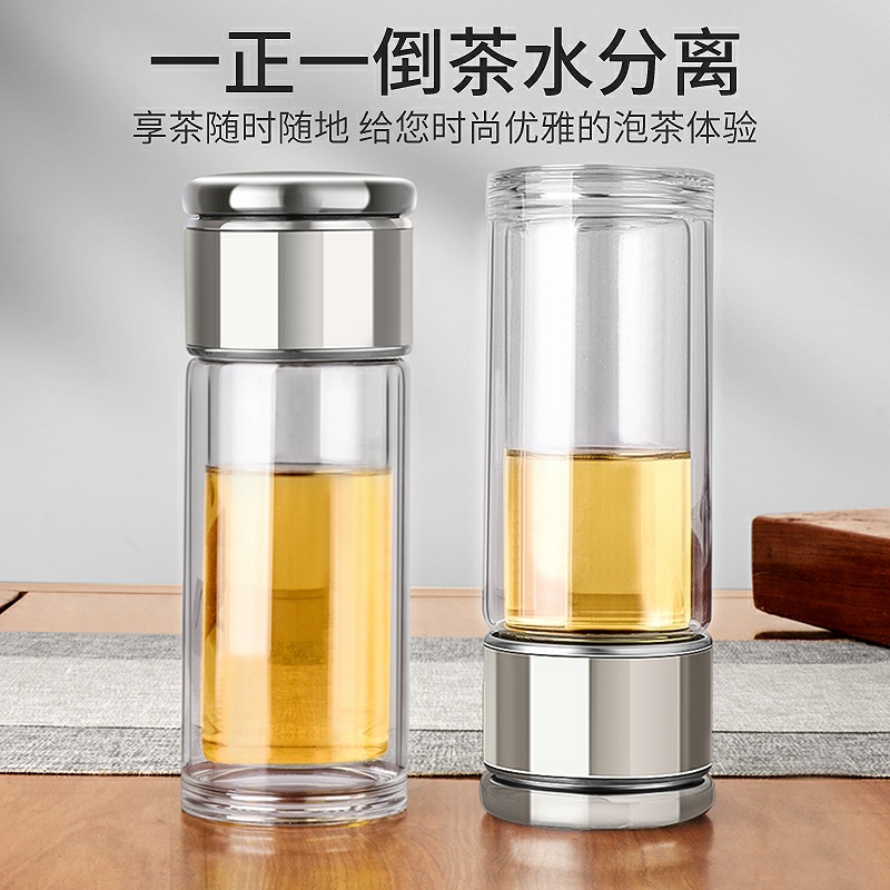智能顯示雙層茶水分離玻璃杯