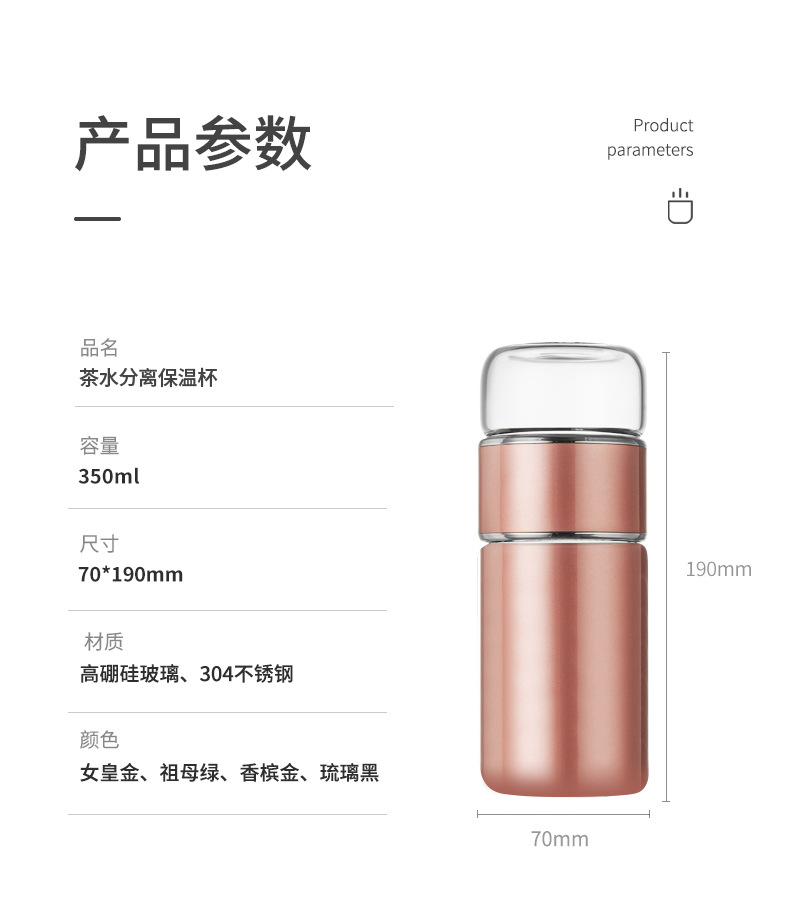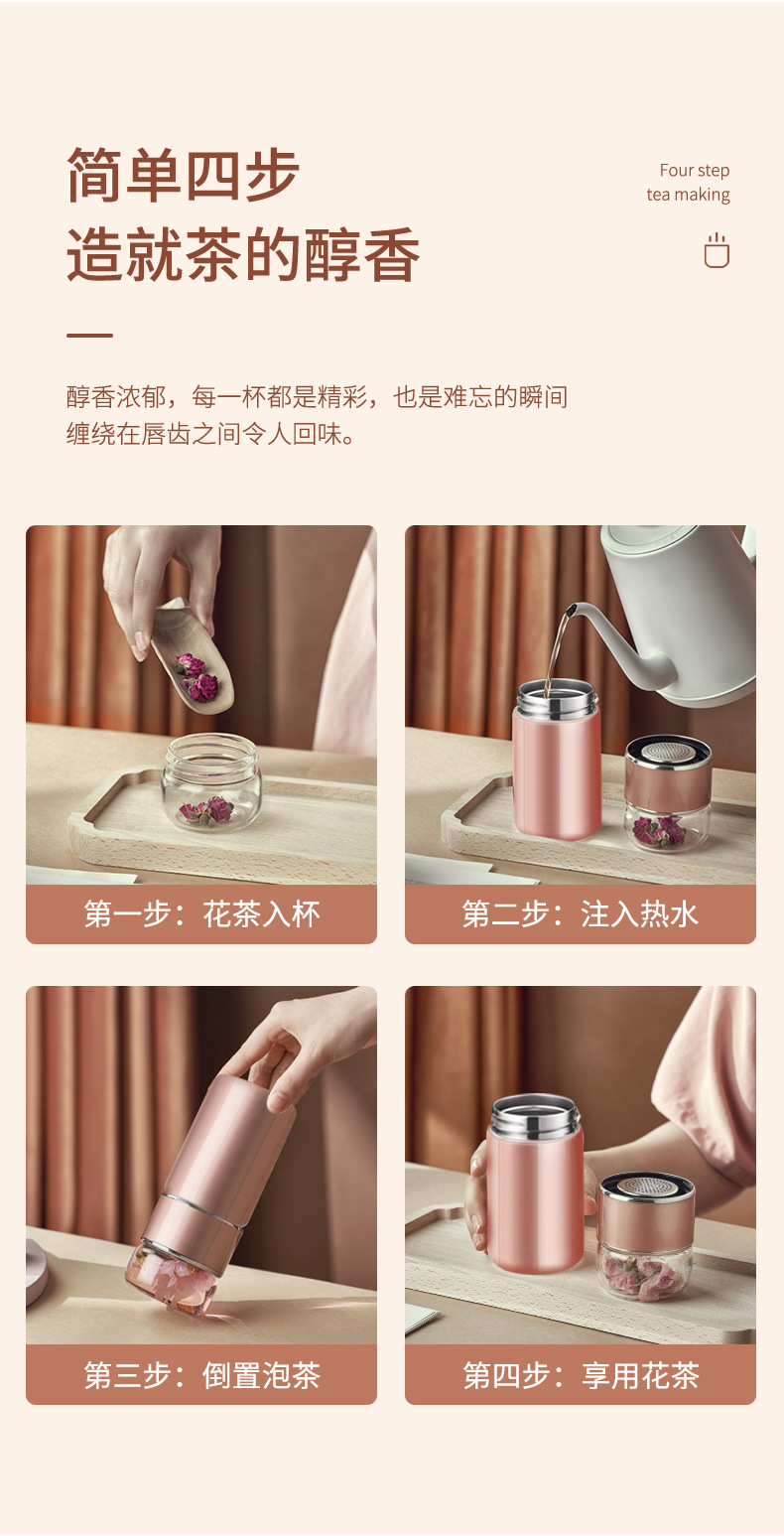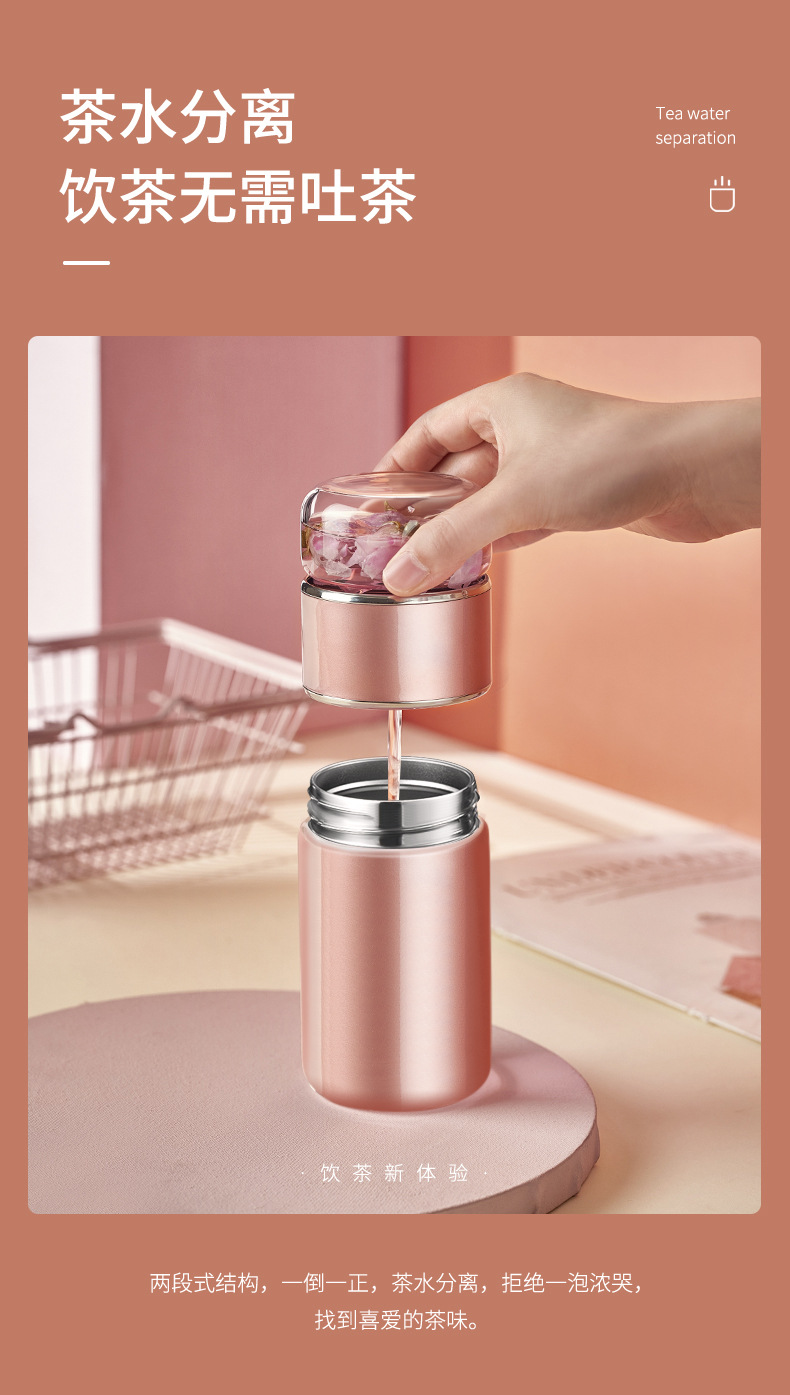 茶水分離泡茶杯子 便攜簡(jiǎn)約雙層玻璃不銹鋼保溫杯花茶過(guò)濾隨性杯