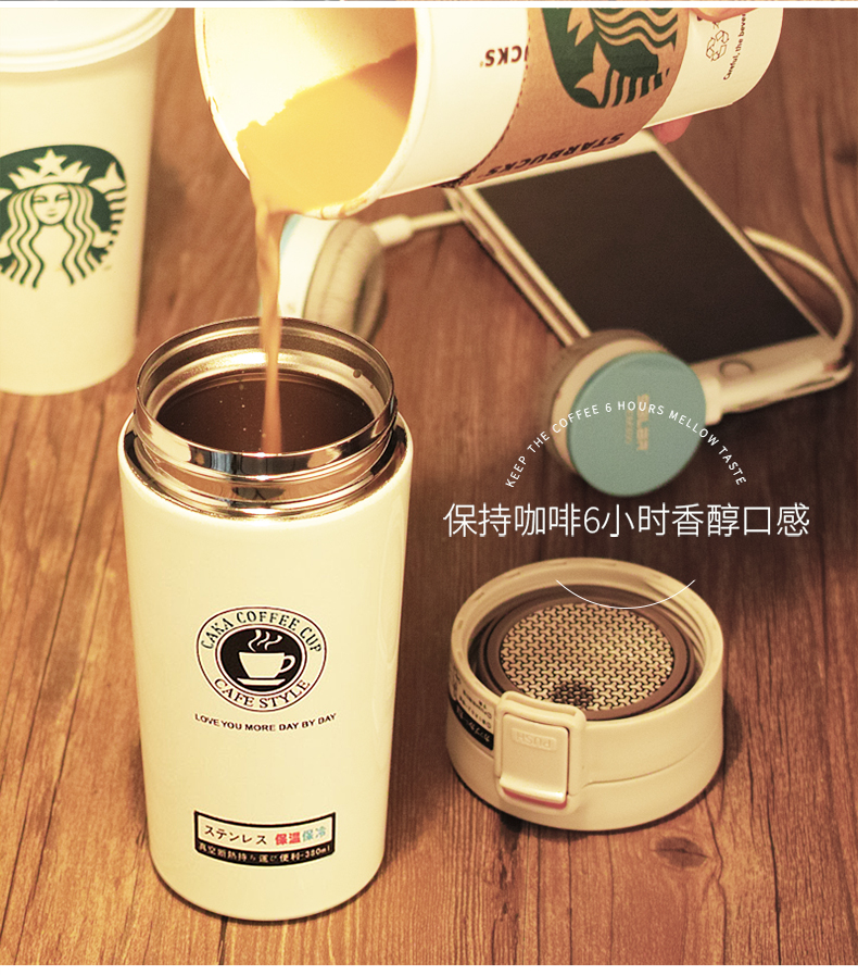 辦公車載保溫杯 時尚男女士便攜學生直身水杯不銹鋼真空咖啡杯子