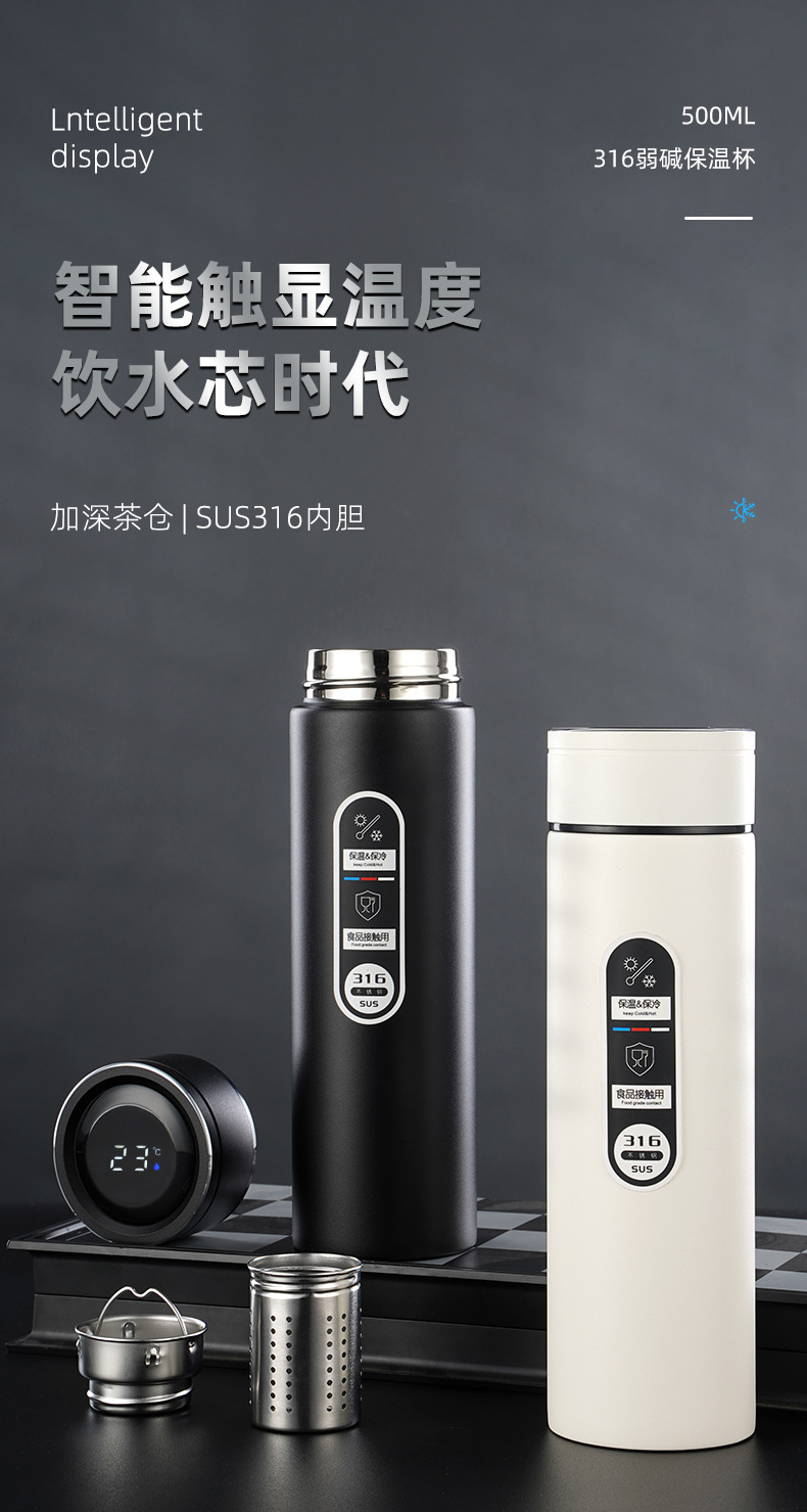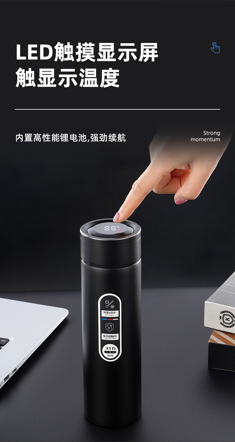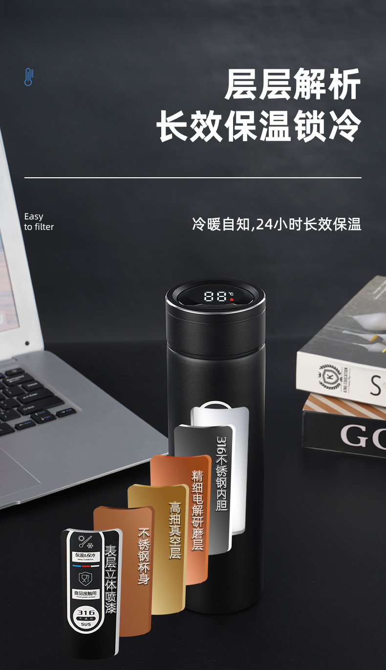316不銹鋼噴塑智能保溫杯男女士辦公水杯泡茶杯車載商務禮品