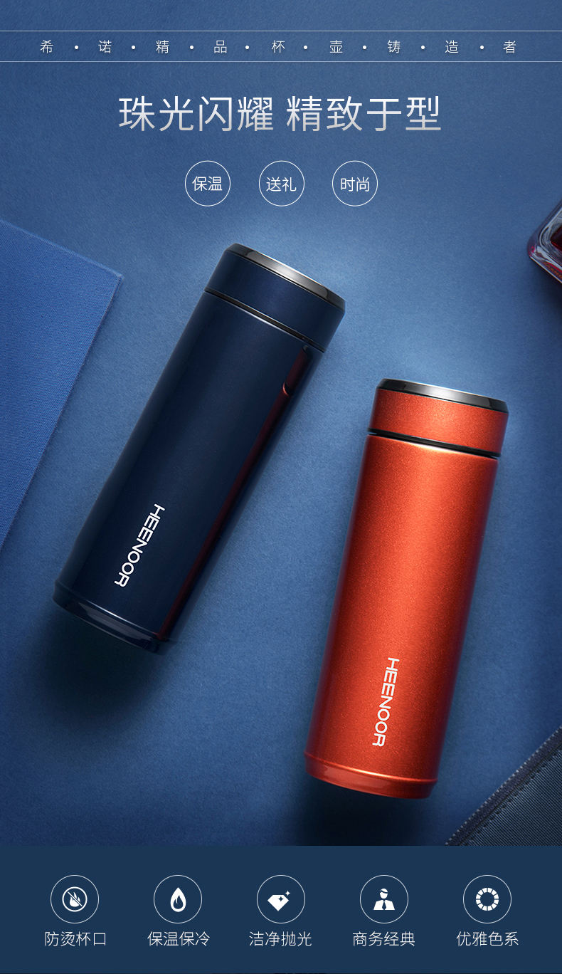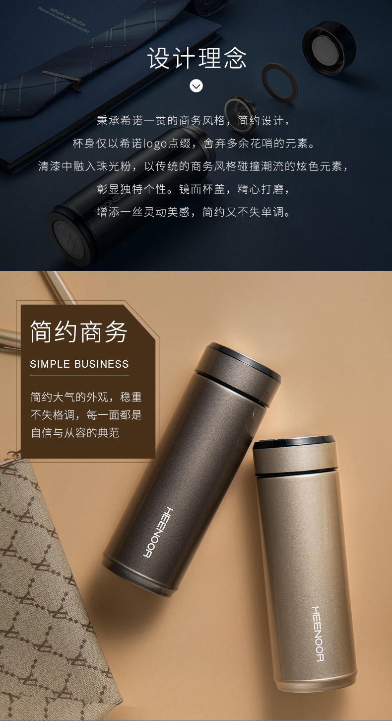 希諾保溫杯真空不銹鋼男女士時尚商務水杯便攜創(chuàng)意帶蓋泡茶杯子