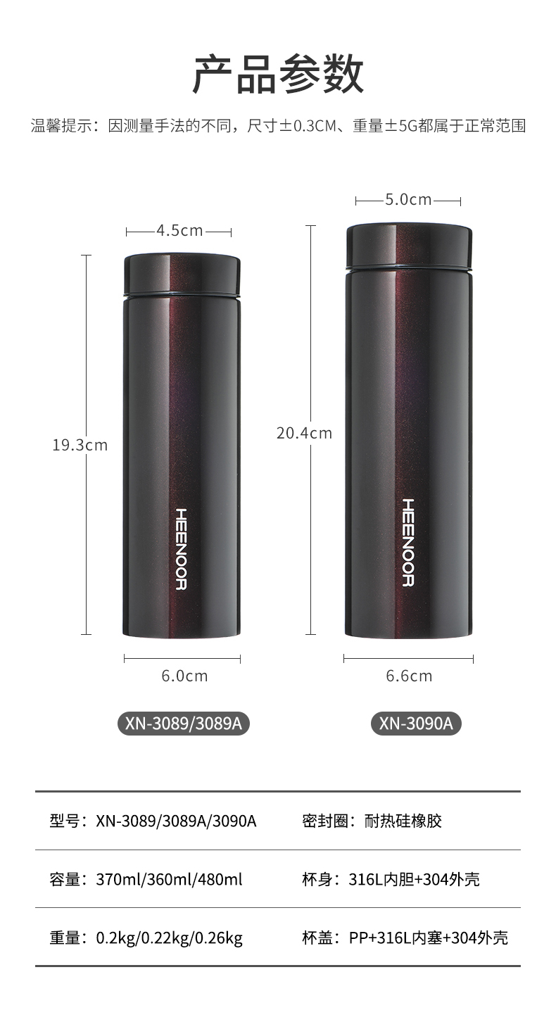 希諾旗艦店保溫杯男316L不銹鋼輕量便攜水杯車載高檔商務辦公茶杯