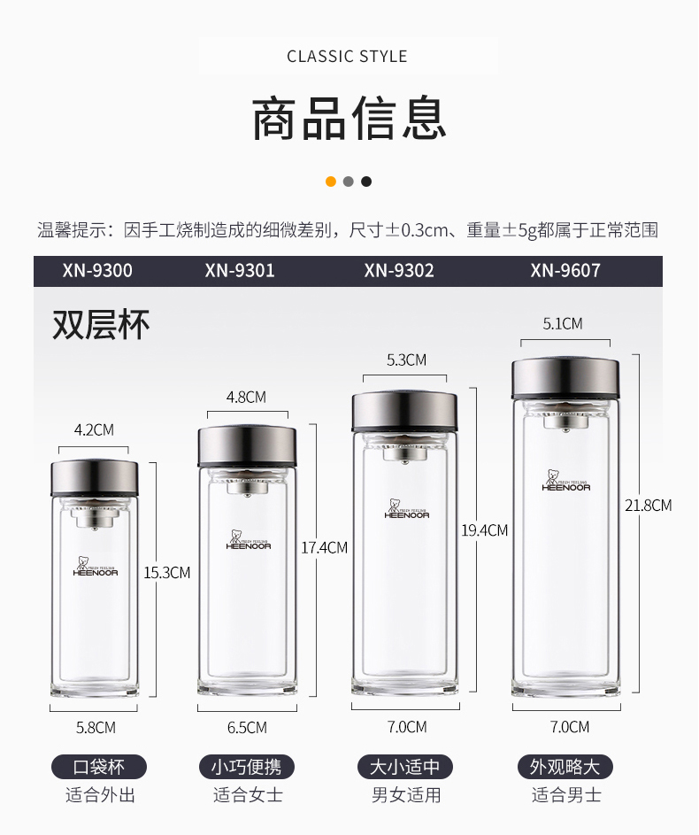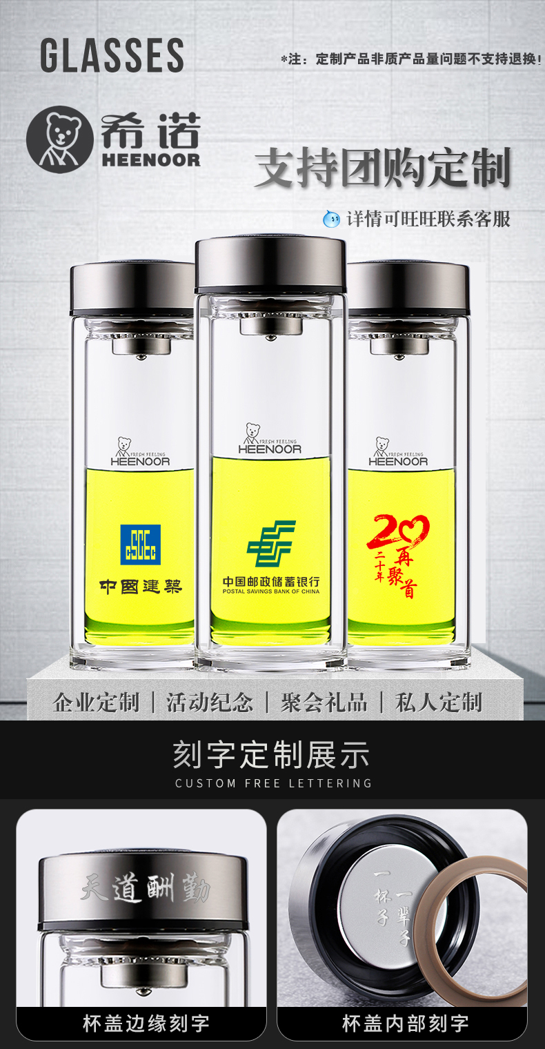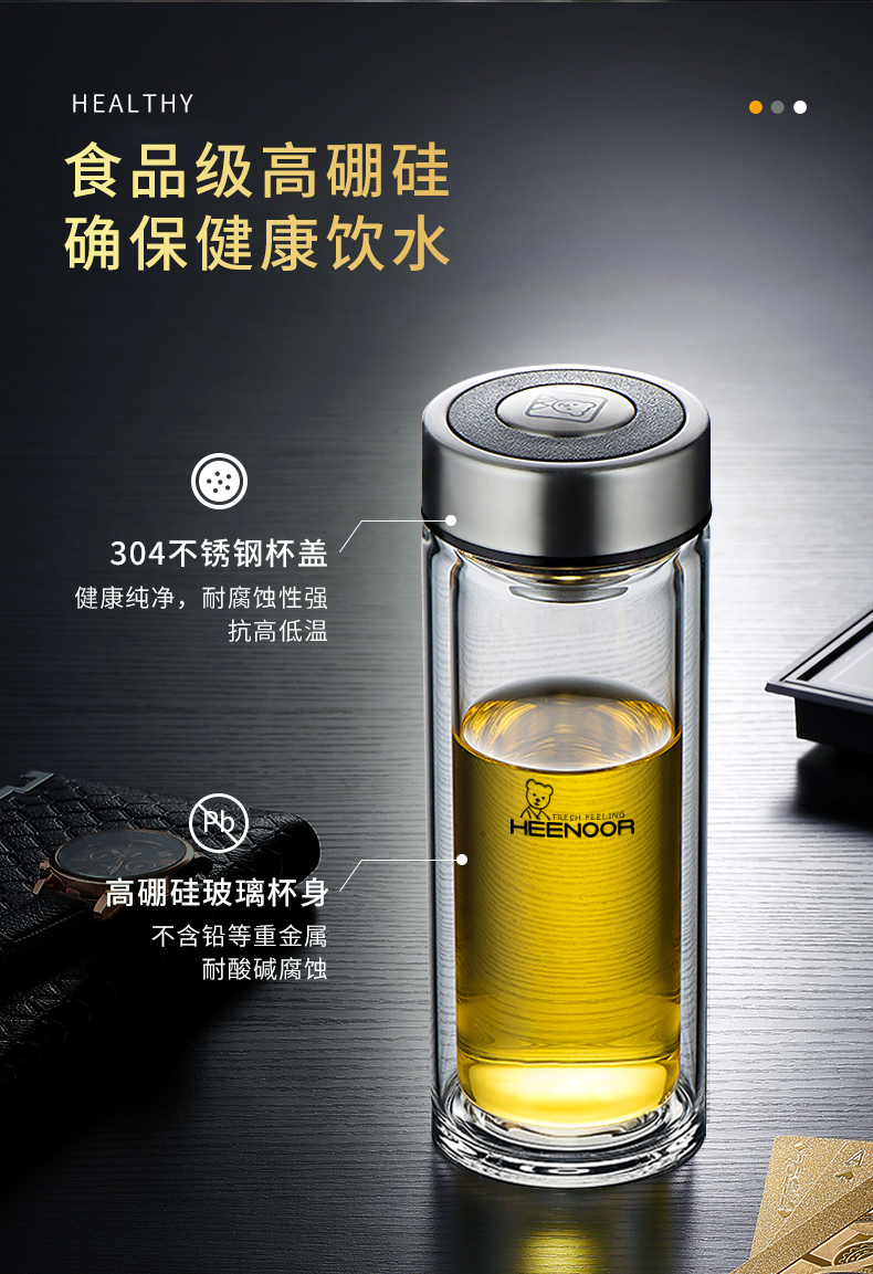 希諾雙層玻璃杯男女士家用高檔抗菌泡茶車載水杯隔熱茶杯透明杯子