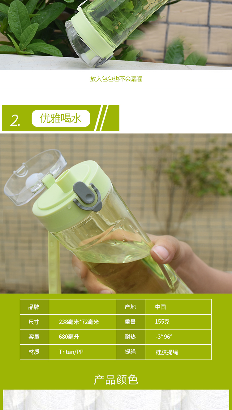 大容量戶外運(yùn)動水壺 塑料杯子 隨手杯帶茶隔 便攜水杯tritan 太空杯 680ml