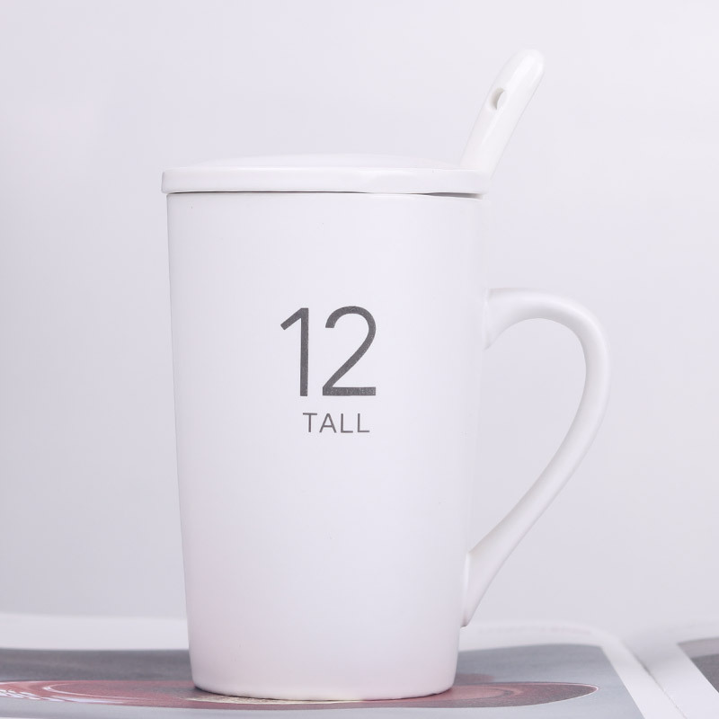 12號杯12盎司馬克杯 16數字陶瓷杯帶蓋 早餐牛奶咖啡杯可印logo